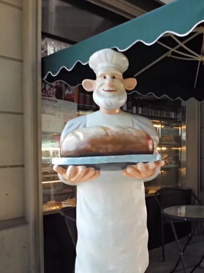 但是后来到北京工作之后,听说“老莫”面包坊有正宗俄罗斯大咧巴,我却很是想往。位于西直门北展建筑群的莫斯科餐厅,其实离我们单位非常近,但是好多年一直没有时间去,直到2014年秋季的一天,我和一个自称“西直门地区就是我长大的地盘”的同事一起,趁着午休特意去了一趟莫斯科餐厅面包坊,我终于见到了心心念念的大咧巴,还见到了面包坊门口的“俄罗斯老爷爷”。我俩高高兴兴掏了腰包,还得了一张优惠券,回去的路上约定以后有机会再一起去买真正的奶油蛋糕。不过,后来我俩都一直是各种忙,没有机会再去。