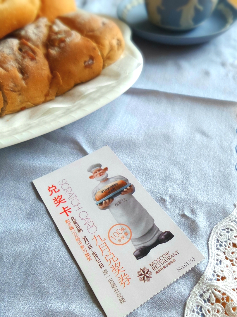 2018年秋天,莫斯科餐厅面包坊在我们单位附近的超市开了专柜,我才又一次买到了俄式面包。但是好景不长,就在2018年年底,我们单位迁出了西城,搬家的时候,我拿出一直压在办公桌玻璃板下面的那张早已过期的优惠券,仿佛还能闻到面包坊里那种特殊的麦香。