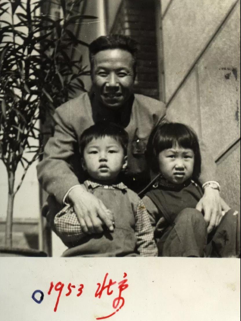 1953年,陈叔亮与儿子陈其钢和女儿陈滨滨在文化部门口的台阶上。