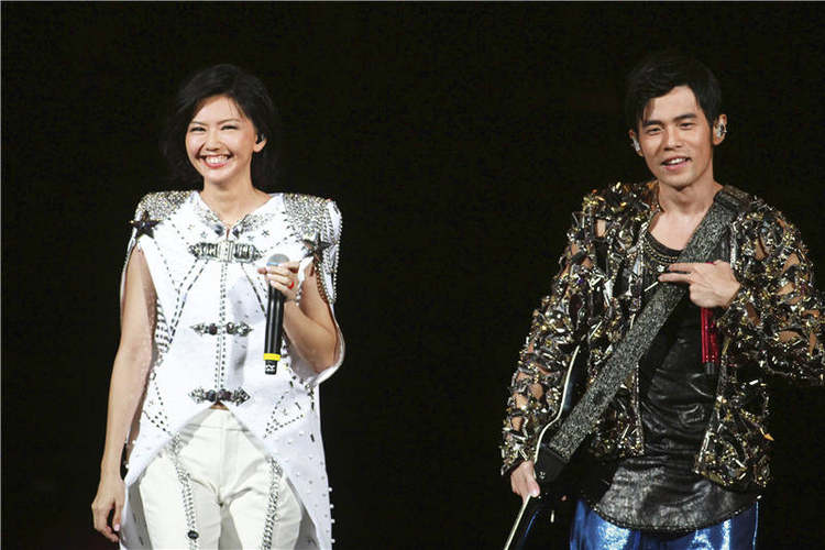 2013年9月6日,周杰伦“魔天伦”世界巡回演唱会在台北小巨蛋举行,孙燕姿作为嘉宾(IC photo供图)
