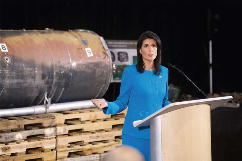 当地时间12月13日,美国驻联合国代表黑莉(Nikki Haley)在位于华盛顿的“斯提亚-波灵联合空军基地”(Joint Base Anacostia-Bolling)的一个机库里举行的新闻发布会上,展示了伊朗向也门胡塞武装出售弹道导弹、违反联合国安理会2231号决议附件的“证据”。两天后的12月15日,美国最早的网络杂志《石板书》上发表了一篇题为“美国可能同时陷入两场不同的战争”的短文。看了这篇短文的大致观点后,我想到了一天前与朋友聊天的内容。