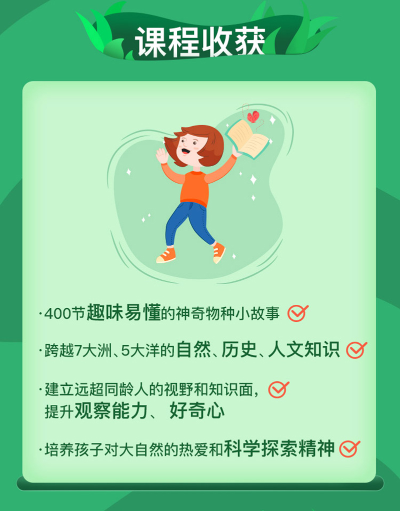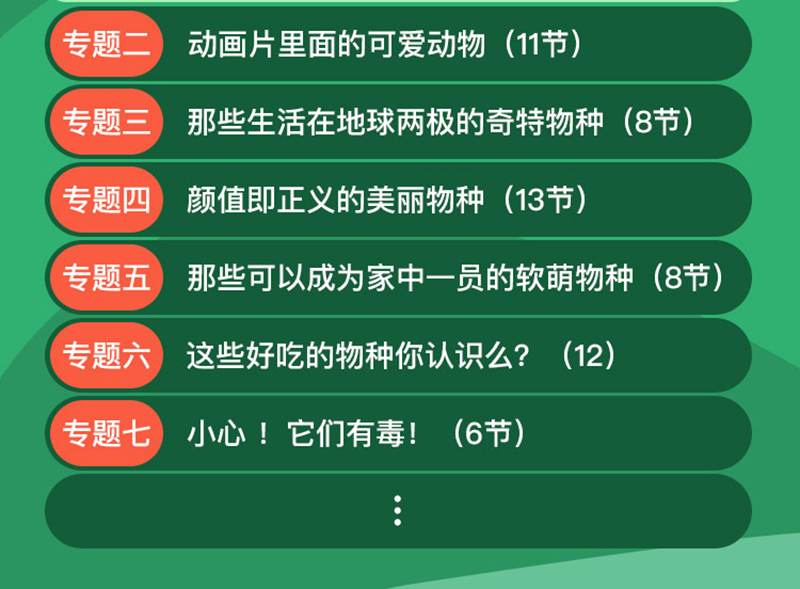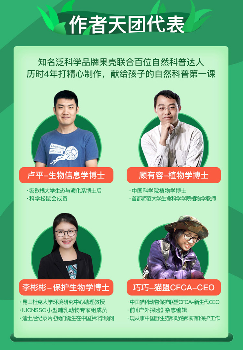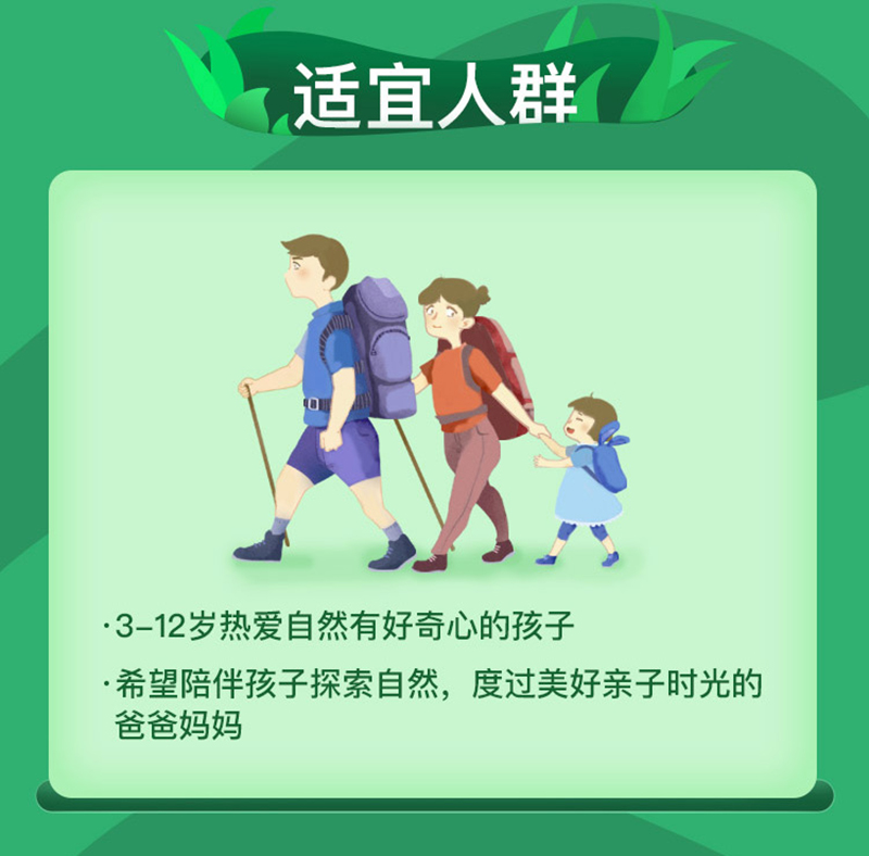 1. 3-12岁热爱自然有好奇心的孩子。 2. 希望陪伴孩子探索自然,度过美好亲子时光的爸爸妈妈。