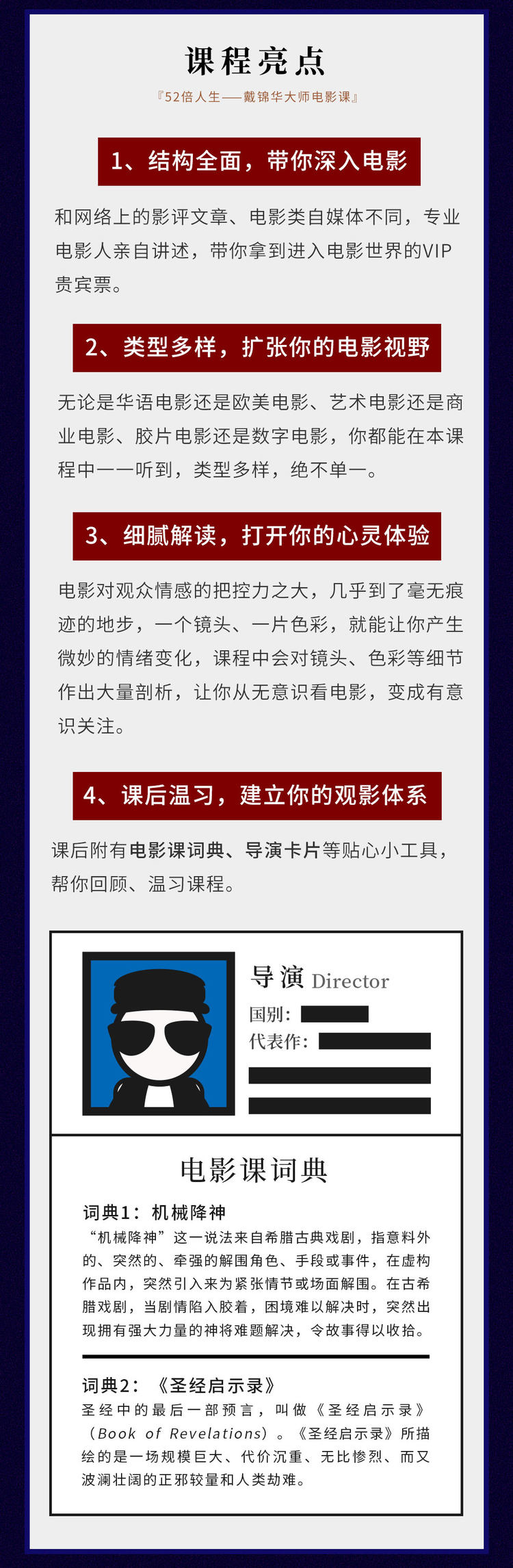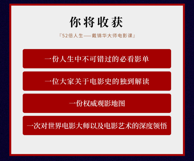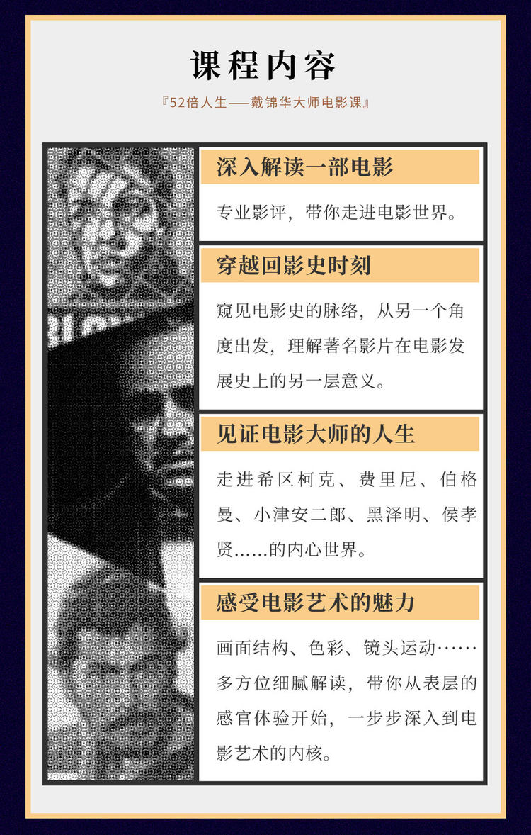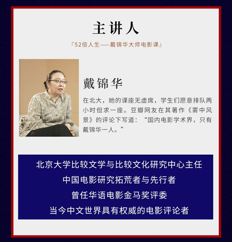2.《52倍人生—戴锦华大师电影课》为音频专栏,首发3节,第二周起每周更新4节,共105节。
